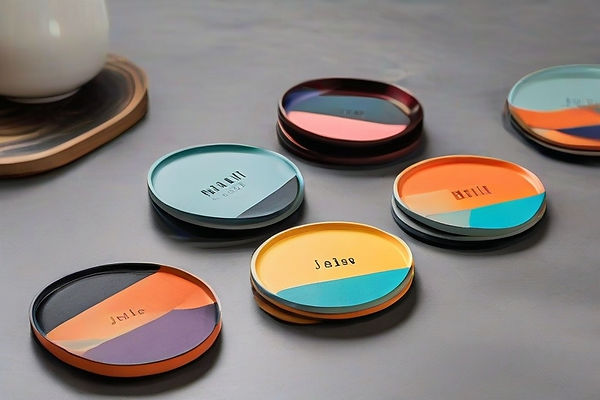Prompt (Leonardo.ai): A set of sleek modern art drinks coasters with names on them